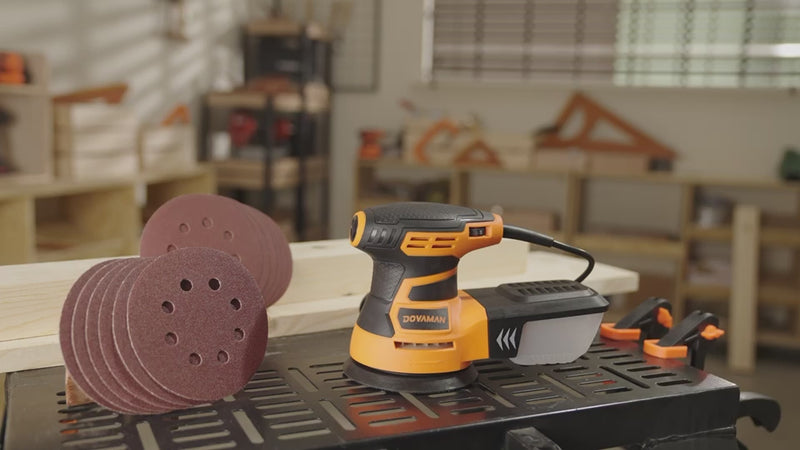 This orbital sander features an ergonomic integrated non-slip rubber handle that fits perfectly in the palm, significantly reducing vibration transmission to the hand and minimizing fatigue during extended use. With six adjustable speeds (6000-13000 RPM) for various materials and a dust collection system compatible with vacuum cleaners, it combines low vibration operation with versatile speed control and efficient dust management. The coordinated design ensures a comfortable, clean, professional sanding experience.